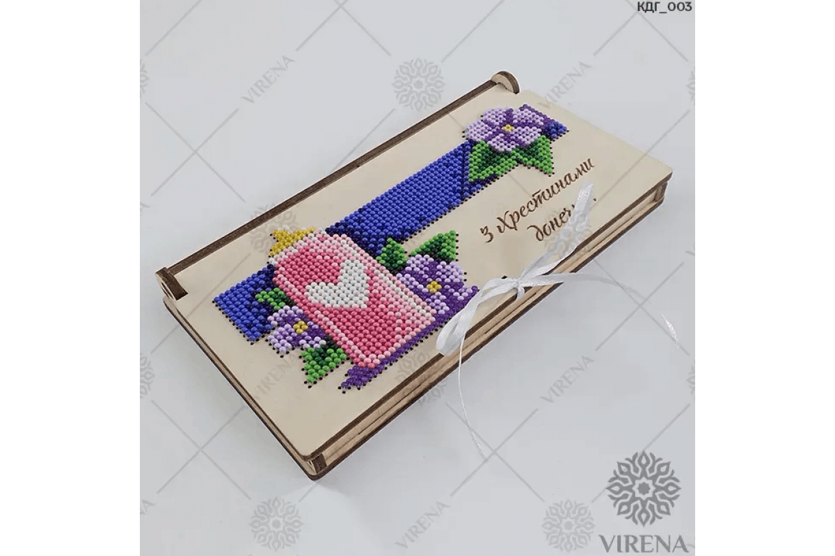 Заготовка для вишивки бісером коробки-конверту "З Хрестинами донечки" КДГ_003