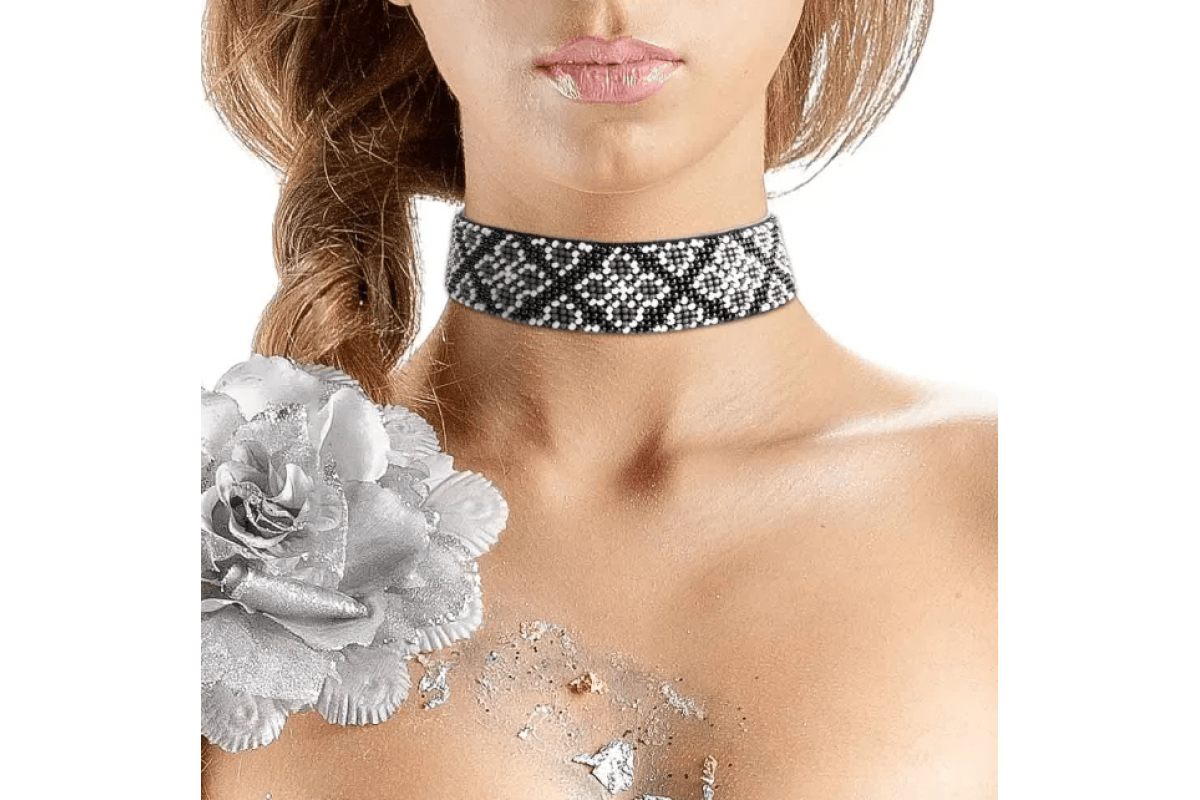 Набір для вишивки на штучній шкірі аксесуару на шию (чокера) з красивим орнаментом. Работа випконується в техніці вишивки бісером.