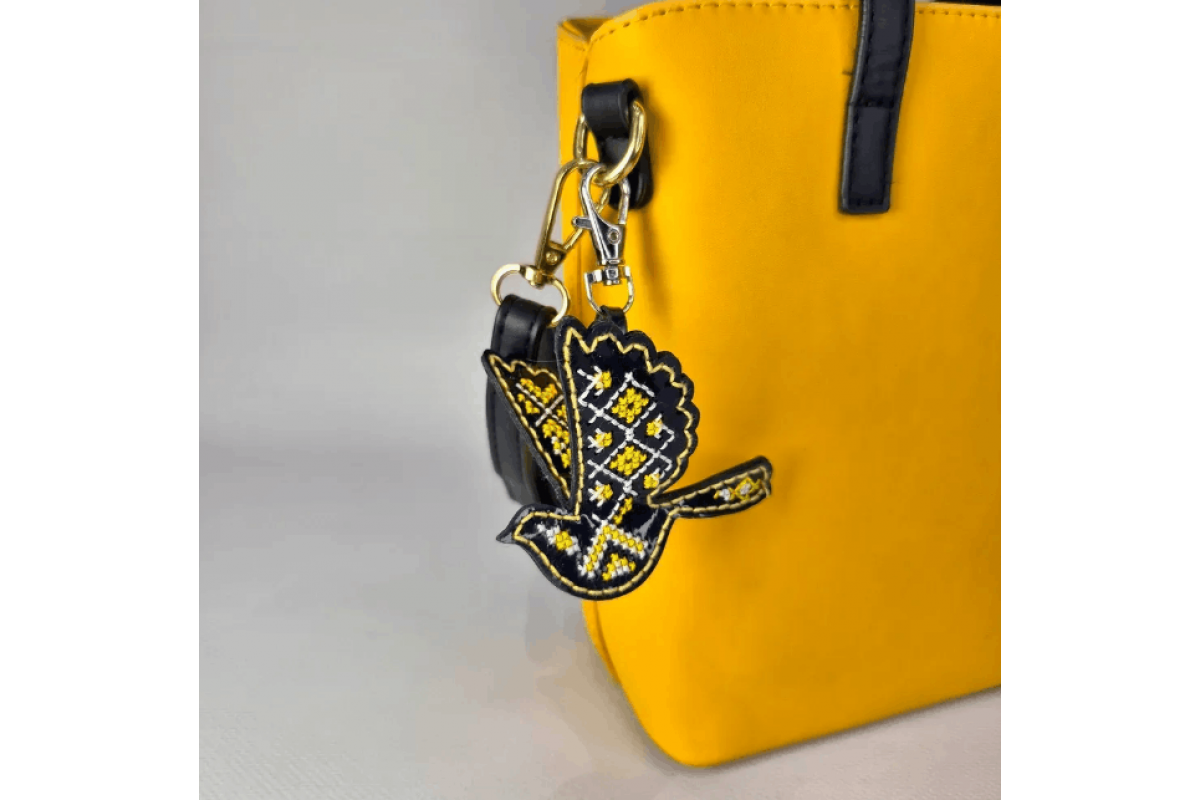 Набір для вишивки оригінального шарму (брелка) на штучній шкірі з красивим орнаментом. Работа випконується в техніці вишивки нитками.