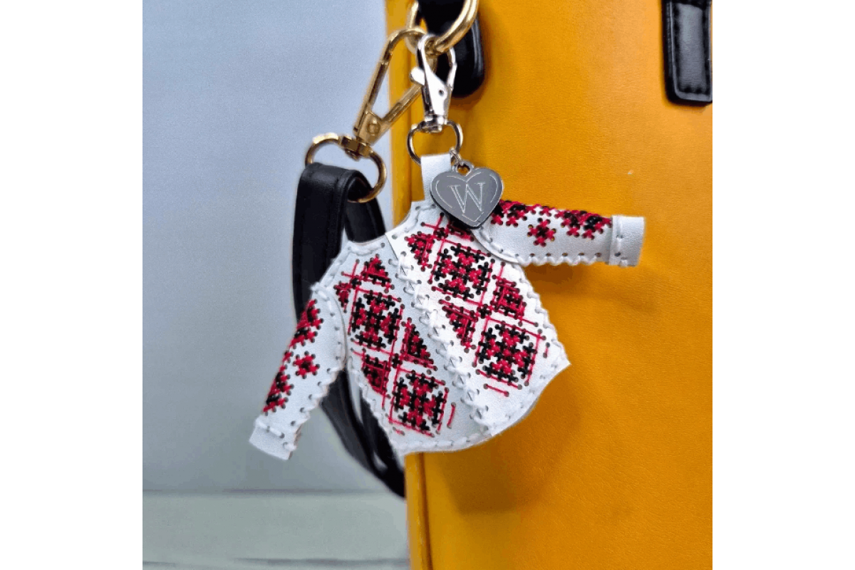 Набір для вишивки оригінального шарму (брелка) на штучній шкірі з красивим орнаментом. Работа випконується в техніці вишивки нитками.