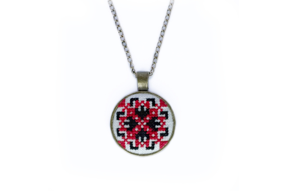 Набір матеріалів дозволяє вишити кулон із закодованим ім'ям "Людмила". Даний орнамент унікальний та розроблений нами спеціально для даного набору.