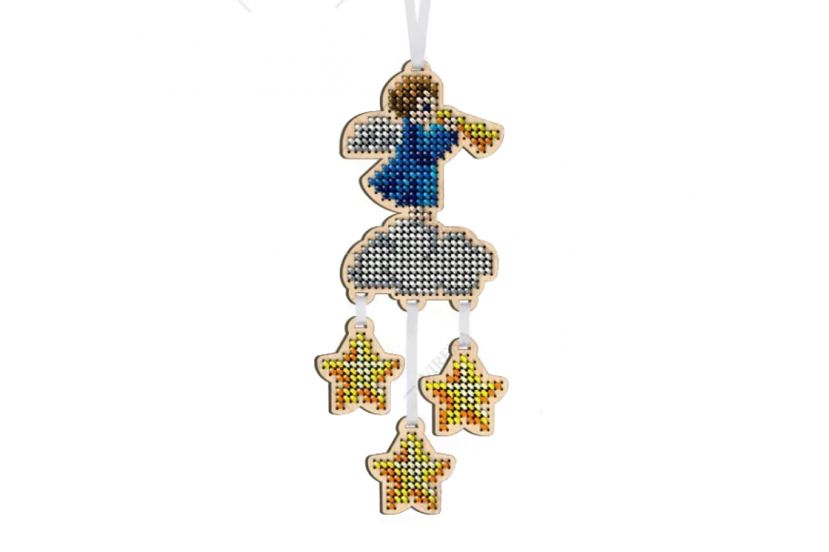 У комплект входить атласна стрічка, за яку іграшку зручно підвісити, та фетр для зворотної сторони. Перед тим як вишивати заготовку, її можна розфарбувати акриловими фарбами і зробити унікальною.