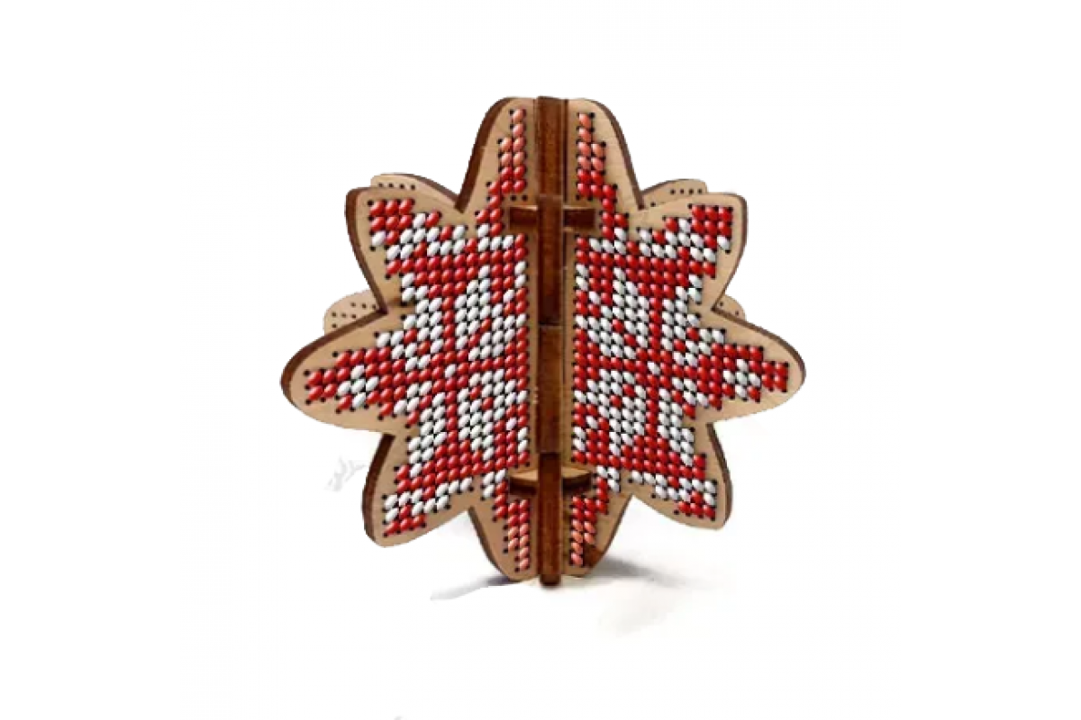 Дерев'яна заготовка для вишивки бісером ялинкової іграшки. Отвори на іграшці розташовані таким чином, що утворюють лінії або сітку зручну для вишивання бісером.