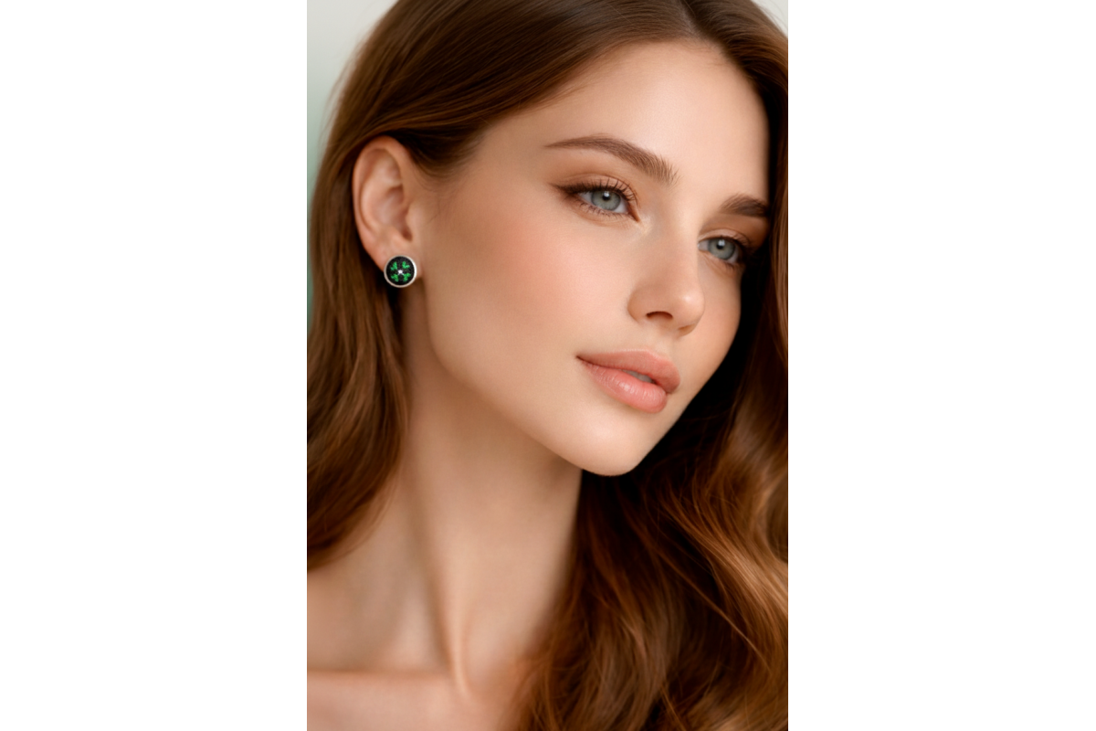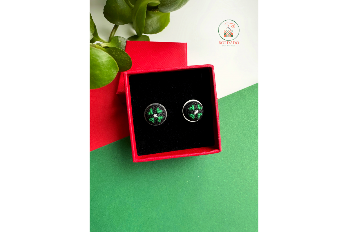 Сережки з ручною вишивкою (мікровишивка). Вишивка виконана на бавовняній тканині бавовняними нитками. Фурнітура із та нержавіючої сталі.